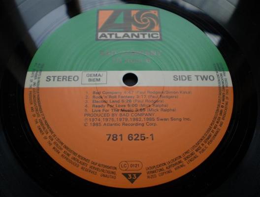 BAD COMPANY 10 FROM 6 GERMAN PRESSING 781 625 -1 ATLANTIC LABELS VINYL ALBUM RECORD! BOTH THE VINYL AND COVER IS NEAR PRISTINE\MINT LOOKS ONLY PLAYED TWO OR THREE TIMES! EXCEPTIONAL AUDIO! -1 –1 MATRIX ENDINGS REF 0202 |
