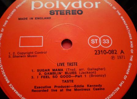 TASTE LIVE (RORY GALLAGHER) 1ST UK 1971 |