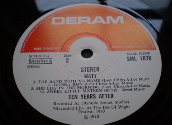 TEN YEARS AFTER WATT 1ST UK PRESSING ALBUM DERAM LABELS SML 1078 1ST UK PRESSING 2W 2W MATRIX ENDINGS VINYL VISUALY GRADES AT LEAST EXCELLENT, PLAYS AWESOME NO CLICKS OR POPS TOP CRISTAL CLEAR AUDIO THE GATEFOLD 1ST ISSUE COVER IS AT LEAST EXCELLENT PLUS! REF 0114 |